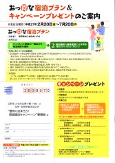 長野県民を対象にした県民宿泊キャンペーン「信州に泊まろう!」(主催:長野県、社団法人信州・長野県観光協会)が、2月20日(金)から7月20日(月)まで実施中です。応募はがきに宿泊施設のスタンプを押してもらい、必要事項を記入して社団法人信州・長野県観光協会内「信州に泊まろう!県民宿泊キャンペーン事務局へ送ると、スタンプの数に応じた商品が当たるというもの。