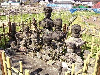 中世の豪族の墓は、屋敷内に設けることが多かった。明治の初年にこの辺りを開墾した時、散乱していた墓石を集め、塚を築いて祭ったものがこの墓地である。各種の宝筐(ほうきょう)印塔や五輪塔などが乱積みされているが誰れの墓であるかは不明である。墓石の材質や様式からして室町時代にさかのぼるものであり、井上氏関係の墓であることは疑いない。 (「井上歴史の道」設置の案内板から)