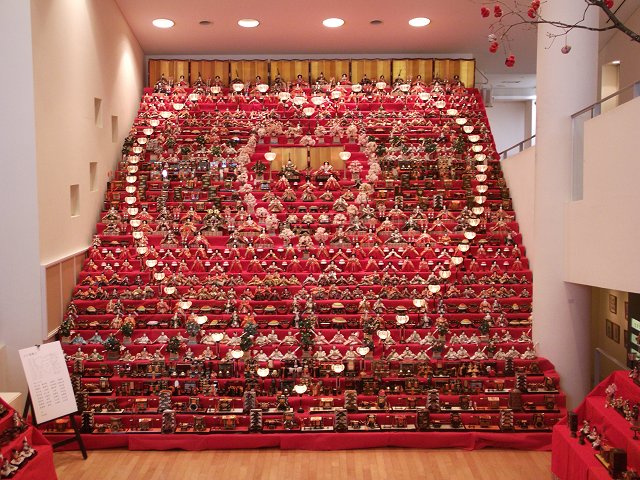 須坂市野辺の須坂アートパーク内にある世界の民俗人形博物館(地図)で、恒例の「三十段飾り千体の雛祭り」が開催されています。展示は平成26年4月20日まで。世界の民俗人形博物館と須坂版画美術館・平塚運一版画美術館との共通券(一般500円・中学生以下は無料)が必要です。
