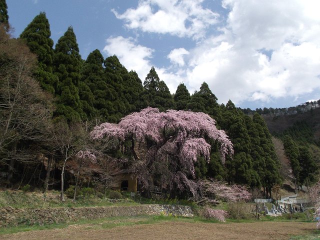 須坂市豊丘の大日向観音堂(地図)にある2本のシダレザクラ。