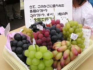 須坂市高畑のAコープアグリスで22日、2009須高ぶどう祭り(主催:JA須高ぶどう部会)が開催されました。会場では、各種ぶどうの試食・販売やぶどうの粒数当てクイズなどが行われ、旬の味を買い求める人たちで賑わいました。 (写真=22日撮影)