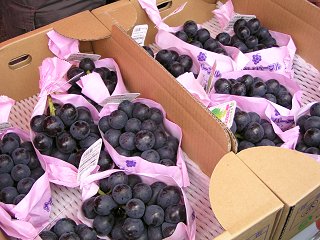 | 話題の「ナガノパープル」 | 定番の「巨峰」 |
