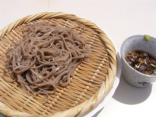 | ずら~り並んだ山菜 | おいしい「富倉そば」(600円) |