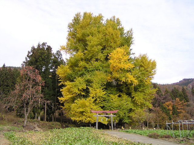 飯山市瑞穂(地図)のある県天然記念物の神戸のイチョウの様子です。