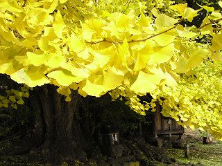 | 「銀杏三寶大明神」 | 黄色に色付いた神戸のイチョウ |