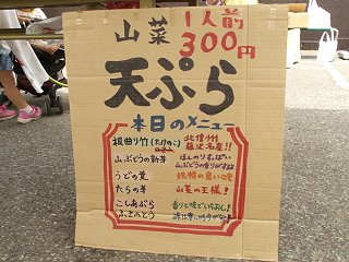 少し遅れて会場に着くと、竹の子や山菜を販売するコーナーは撤収状態…。旬の山菜を求める人たちが午前8時頃から並び、イベントの始まるのを待っていたそうです。