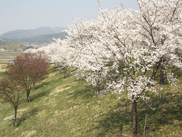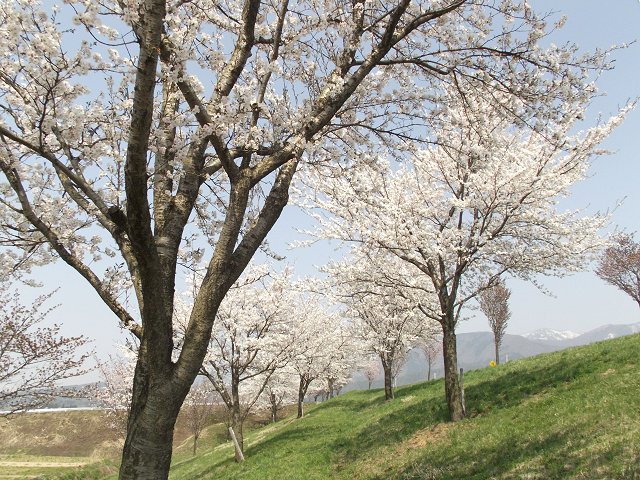 (写真:千曲川桜堤咲くサクラ=26日午後撮影、640×480拡大可能)
