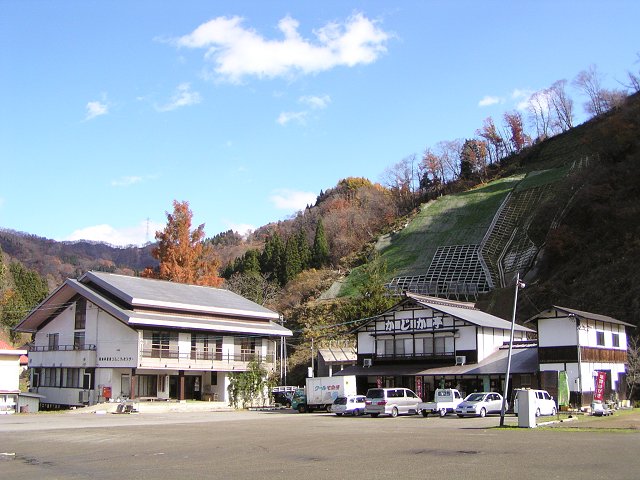写真は、新そば祭りの会場になった旧富倉小学校跡地に建つ富倉ふるさとセンター・かじか亭。今日も彩りを深めた紅葉を眺めながら、名物「富倉そば」を味わう観光客で賑わっていました。 (写真=15日撮影、640×480拡大可能)