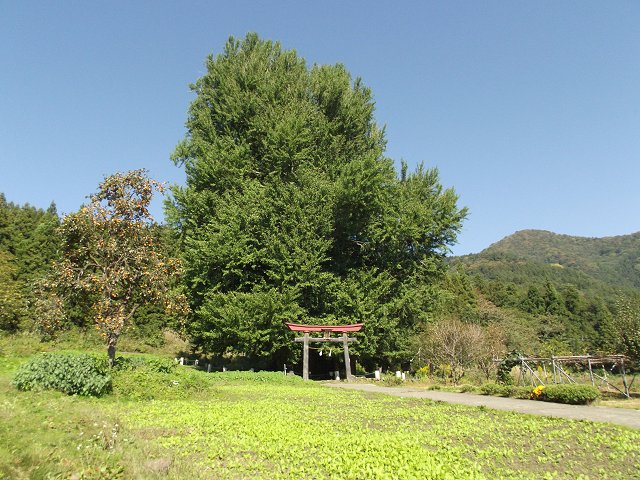 飯山市瑞穂にある県天然記念物の神戸の大イチョウ(地図)の様子。