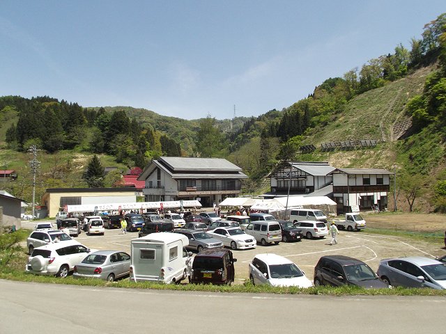 飯山市富倉の富倉活性化センター前(地図)で11日、恒例の「とみくら山菜まつり」が開催されました。