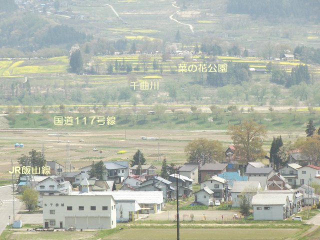 (写真:長峰スポーツ公園近くから撮影した飯山市瑞穂の菜の花公園=5日午前撮影、640×480拡大可能)