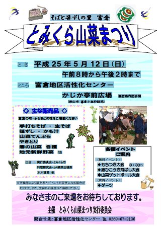 とみくら山菜まつり http://www.city.iiyama.nagano.jp/ |