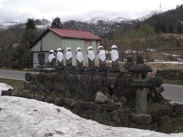 飯山市西大滝の県道沿いにある六地蔵(地図)のうち5体が、下水内郡栄村を中心に起きた地震後、揃って向きを変えているのが見つかり話題になっていると、23日付信濃毎日新聞に紹介されました。