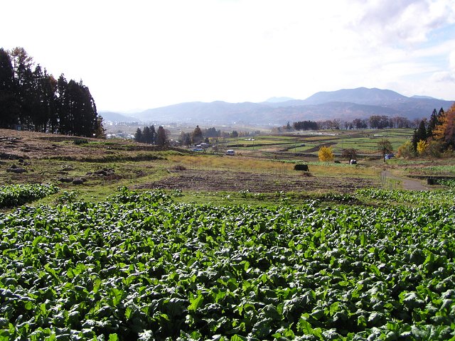 野沢菜の収穫はこれからが本番。隣りの野沢菜発祥の地として知られる野沢温泉村では、村内の畑で野沢菜の収穫体験が行われていました。