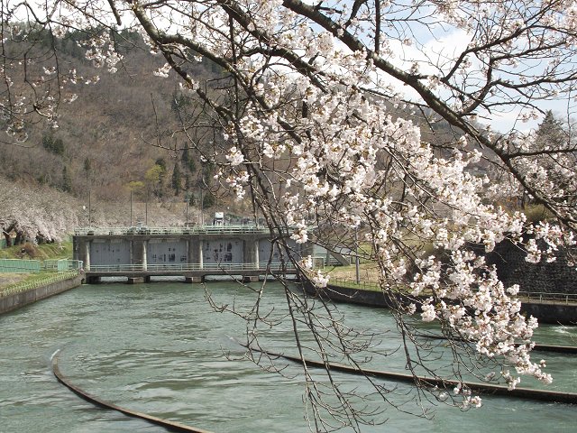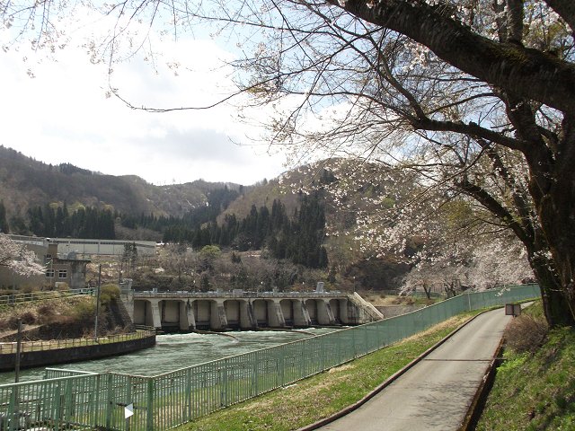 今年は開花が早かったのか、ダム周辺のサクラは既に散り始めといった状況でしたが、導水路沿いのサクラ並木にはまだ花が残り、まるで映画やドラマのシーンにもでてくるような華やかさを留めていました。