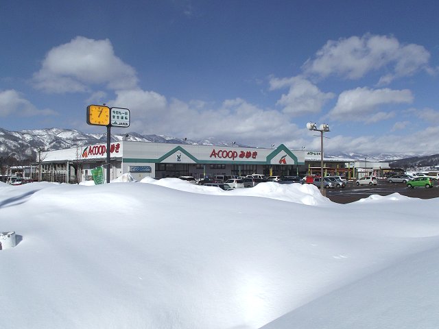 飯山市常盤の道の駅( http://www.chikumagawa.net/ )とその周辺の風景。