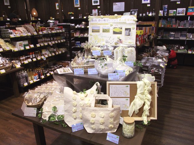 春の飯山を彩る菜の花を使い染めた布製品が1月から道の駅で販売を始めました。