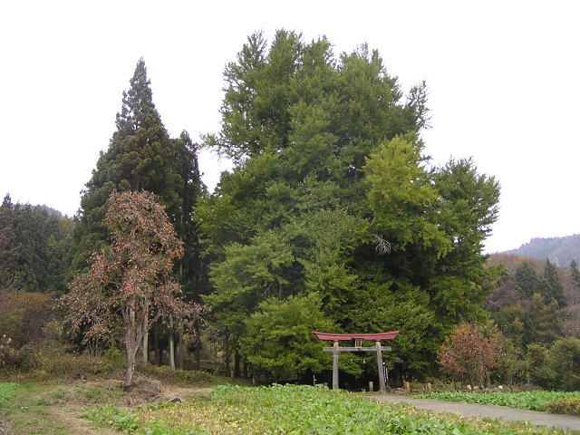 飯山市瑞穂(地図)にある県天然記念物の神戸(ごうど)のイチョウの様子です。