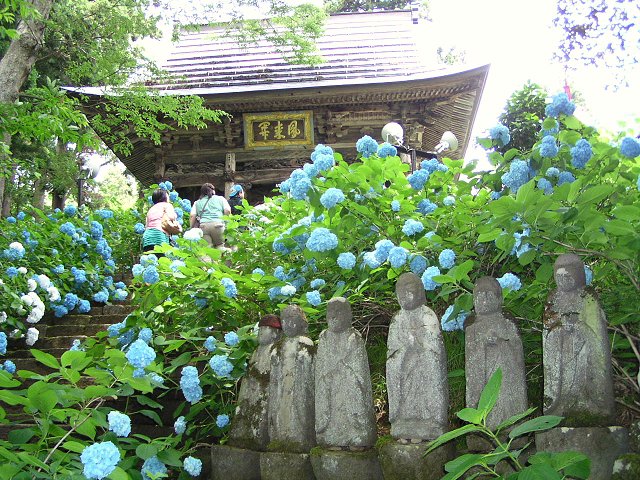 見ごろを迎えた飯山市豊田(地図)の高源院に咲くあじさいです。