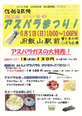 JR飯山線・飯山駅前にある雪と寺の町シンボル広場で、6月1日(日)午前10時から午後1時まで「アスパラまつり」が開催されます。