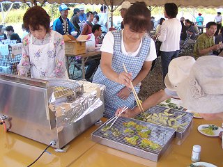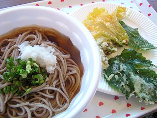 会場では、地元産そば粉を使った打ちたてのそば(500円)のほか、マコモダケやかぼちゃの花、桑の葉を使って揚げられたてんぷら(300円)も提供。訪れた人たちが見ごろを迎えたそばの花を眺めながら、旬の味に舌鼓を打つ姿が見られました。 (写真:天龍峡そば祭り=18日撮影、640×480拡大可能)