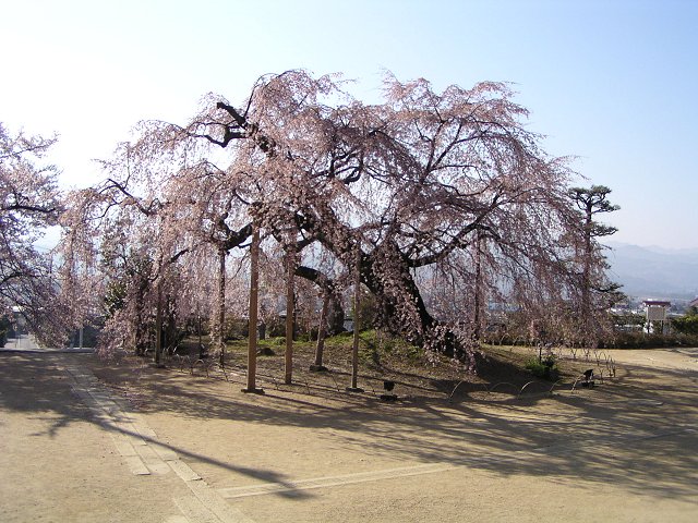 写真は、11日撮影した飯田市座光寺(地図)にある舞台桜の様子。