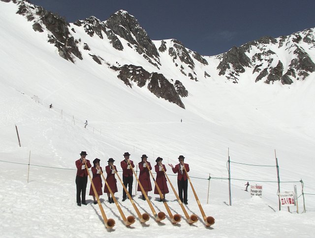 その後行われたアトラクションでは、地元・駒ヶ根を中心に活躍されている「アルプホルン駒ヶ根」のみなさんが「アメージンググレイス」など3曲を披露。青空と白銀の世界で奏でられるホルンの音色は、春山シーズンの到来を告げるにふさわしく、心に残るものとなりました。