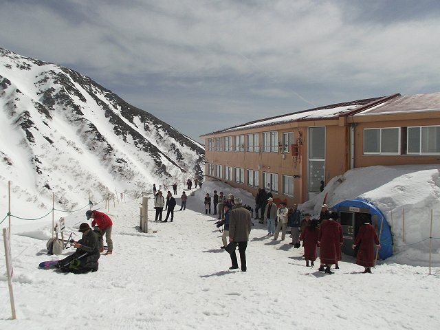 なのかぁ…と考えたりも。開山祭は、宝剣岳と千畳敷カールを望むホテル東側の駒ヶ岳神社前で、午前10時10分から行われました。駒ヶ根観光協会さんの進行で、先ずは遭難・殉職された方々への黙とう。神主さんによる神事、観光協会会長、駒ケ根市長さんなど関係者14名による玉串奉典と続き、およそ30分ほどで安全祈願祭は恙無く終了となりました。