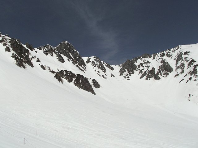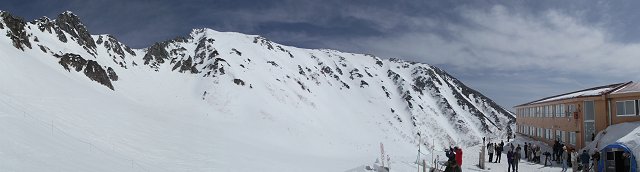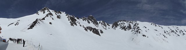 | 宝剣岳と千畳敷カール | 千畳敷ではスノボーを楽しむ人も… |