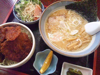 こってりしたラーメンは専門店ならではの味。そして、自慢のソースかつ丼も肉も柔らかく、ソース味の加減もぴったりで、女性やお子さんにも丁度良い味付けになっていました。