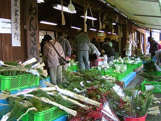 上水内郡中条村の道の駅中条で21日、特産品や地元の名人が作ったしめ飾りなどを販売する恒例の年の暮れ特産フェアーが開催されました。 (写真=21日撮影)