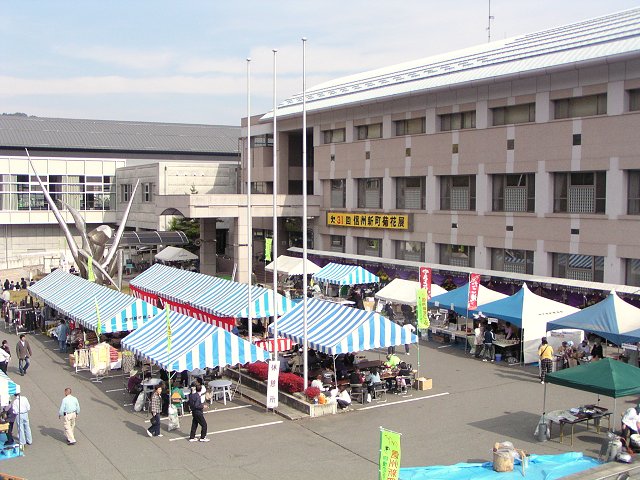 上水内郡信州新町では、10月31日と1日の2日間、役場前(地図)をメイン会場に町の特産品を紹介する信州新町フェア(主催:信州新町フェア実行委員会)が開催されました。 (写真=1日撮影、640×480拡大可能)
