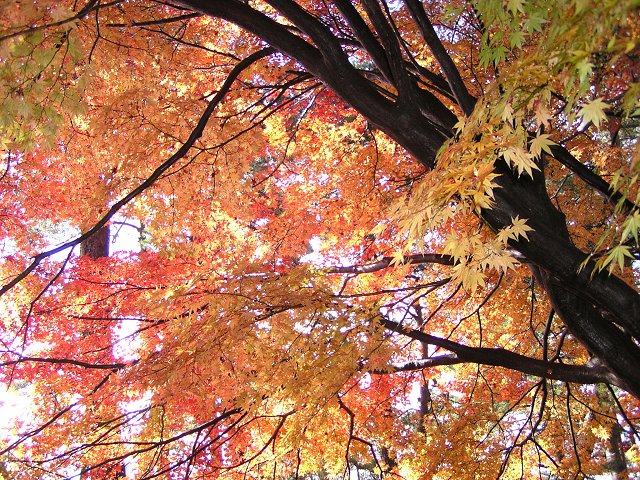 山形村から波田町へ、県道を国道方面に下ってきましたら、アカマツ林のなかで鮮やかな赤色に色付くもみじが目に留まりました。まだまだ緑色の葉が残っていますが、寒くなるにつれて次第に赤みが増していくのかもしれません。