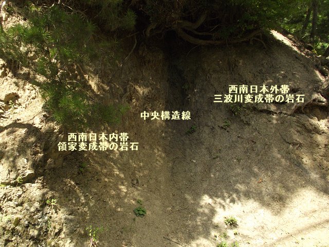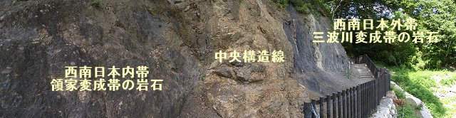| 中央構造線の位置 | 溝口露頭案内図 |