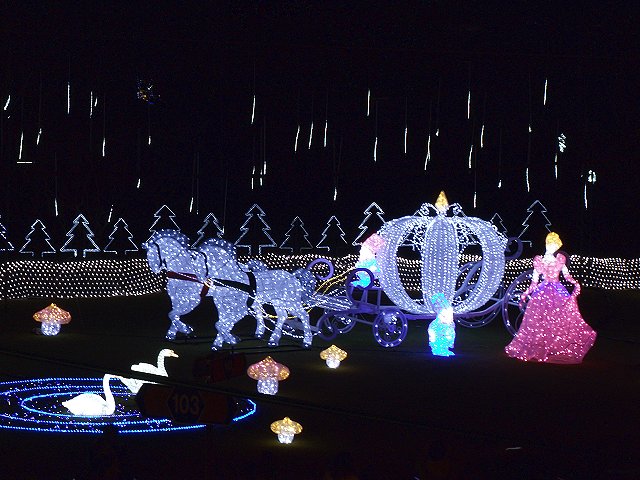 今年のテーマは「Cinderella Story ~ 冬のロマンス 」。15万個のLEDを使って描かれたシンデレラや動物たちの幻想的な姿が沿道を彩っています。
