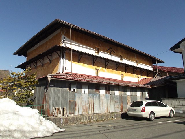 この建物は、昭和初期、岡谷に在った繭蔵を移築し寒天倉庫として使ってきたものです。明治から大正期、岡谷は製糸で栄えていました。昭和に入り製糸が下火になるのと入れ替わるように、ここ茅野では寒天作りが盛んになっていました。