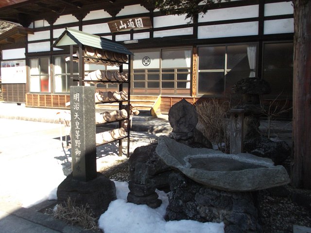 明治十三年明治天皇は山梨・三重・京都御巡幸の際茅野をお通りになり、丸井伊藤商店前の五味三郎宅で御休憩された。出発は六月十六日で二十三日山梨県から諏訪に入られ午後に地に五味宅へお着きになった。一行は伏見宮・太政大臣三條実美・参議寺島宗則・伊藤博文等五百余名が従者としておいでになり、小休所では宗湖庵の井戸水を用いてお茶を差し上げた。御下賜品は白羽二重一匹・金拾五円、宗湖庵へは金五十銭を賜った。一行は約1時間お休みになって上諏訪へご出発された。