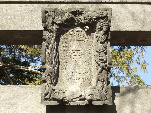 此の門は明治十三年 明治天皇 山梨、長野、三重、京都御巡幸の砌、当地五味和三郎邸にご休息に成られた、その折り、旧諏訪藩家老千野家の門、通称三の丸の御門を移築しお迎え申し上げた奉迎門で有る。