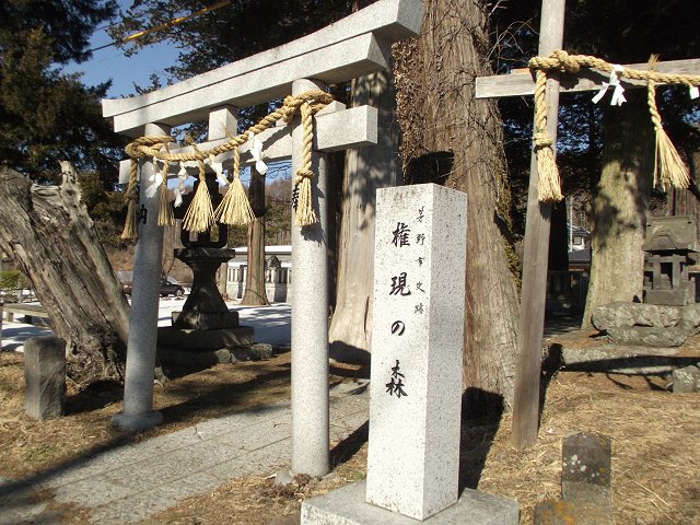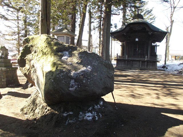 御射山祭神事の祭場であり、前夜祭では濁酒(どぶろく)を作り奉納したと伝えられています。祭神は酒解子之(さけとくね)神。