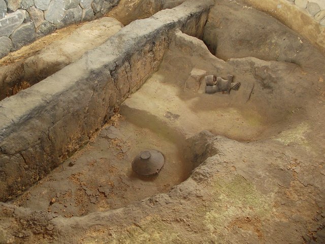 「仮面の女神」は遺体を埋葬したのち、小さい穴を掘り込み、安置したことが、土の埋まり具合から判明しています。