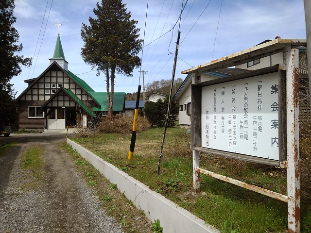 「建築家としても有名なウィリアム・メレル・ヴォーリズ氏( Wikipedia )が設計した教会です。周りの村人に威圧感を与えない工夫や雪国ならではの工夫がみられる協会です」とのこと。通りから少し奥まったところにあり、普通に歩いていると見落としてしまいそうな建物で、周りの景色とも上手く馴染んでいるように感じます。また、紹介文にもありますが、屋根の勾配が急になっており、雪国ならではの工夫のある建物という点に注目しますと、ウォーキングコースのスポットとして選ばれた理由もわかるように思いました。