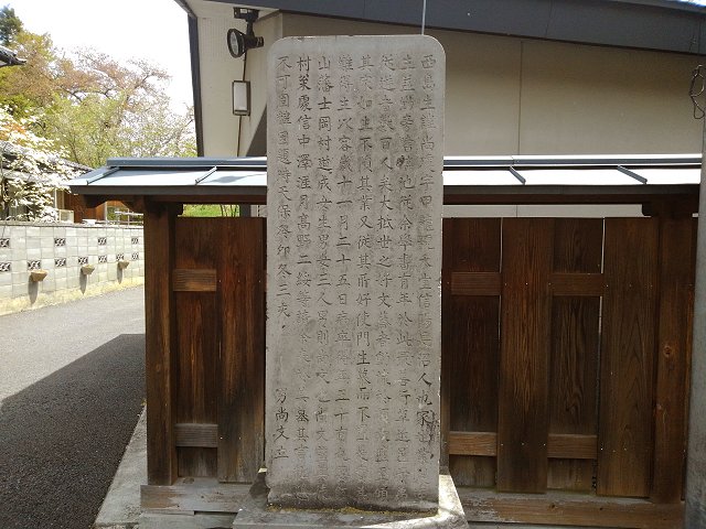佐久間象山は、松代における九年の蟄居の後、元治元年(一八六四)三月幕府の招きに応じて京都に上り、しばらくして三条木屋町の鴨川べりの一戸構えに移った。その家は平屋で広く、茶室までも備わり、鴨川を隔てて東山・八坂の塔なども見える、眺めの良い家であった。象山は雨に煙る情緒豊かな風情を愛で、煙雨楼と名づけた。同年七月十一日、攘夷論者のため悲業の最後を迎える迄に僅か二ヶ月の住居であった。