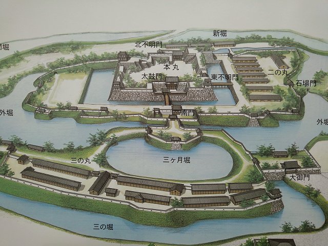 その後、江戸時代の半ばには、水害などにより、本丸御殿の機能は城に南西に位置する花の丸御殿に移りました。