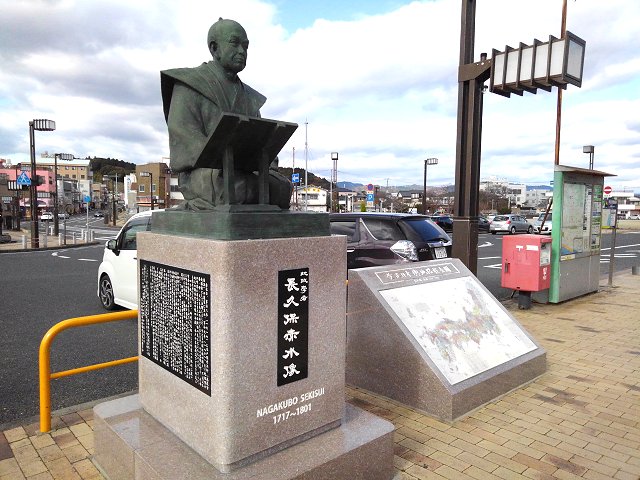 (JR常磐線高萩駅前に設置された長久保赤水先生銅像建立実行委員会による案内板から・平成24年)