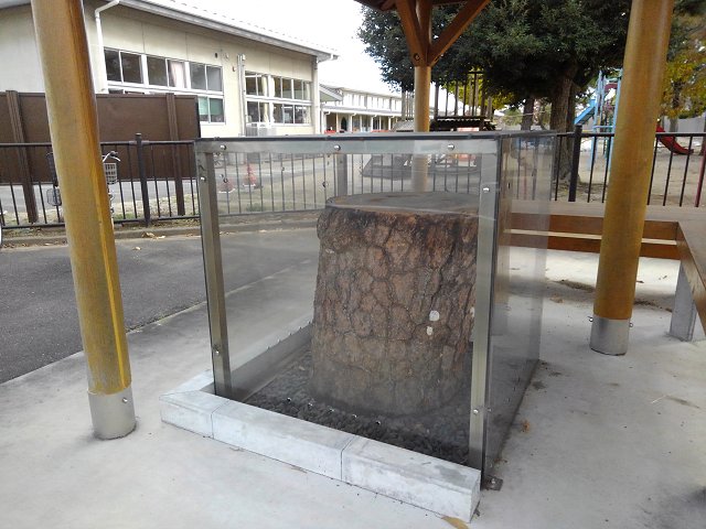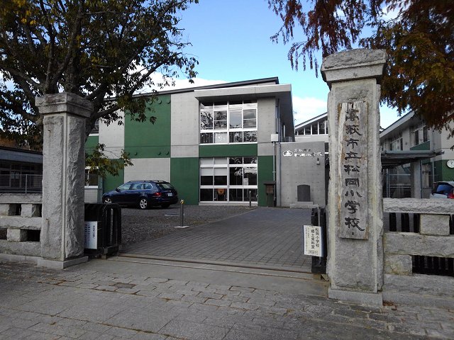 以前は松岡小学校敷地の北西側にあったが、平成二十二年の校舎改築に合わせて現在の場所に移設した。