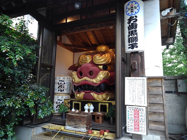 明治座と人形町を結ぶ「甘酒横丁」が「浜町縁道」を交わるところで、ある人物がみなさんを待っているわん。その人物が持つ数珠はいくつ?(数字1文字)